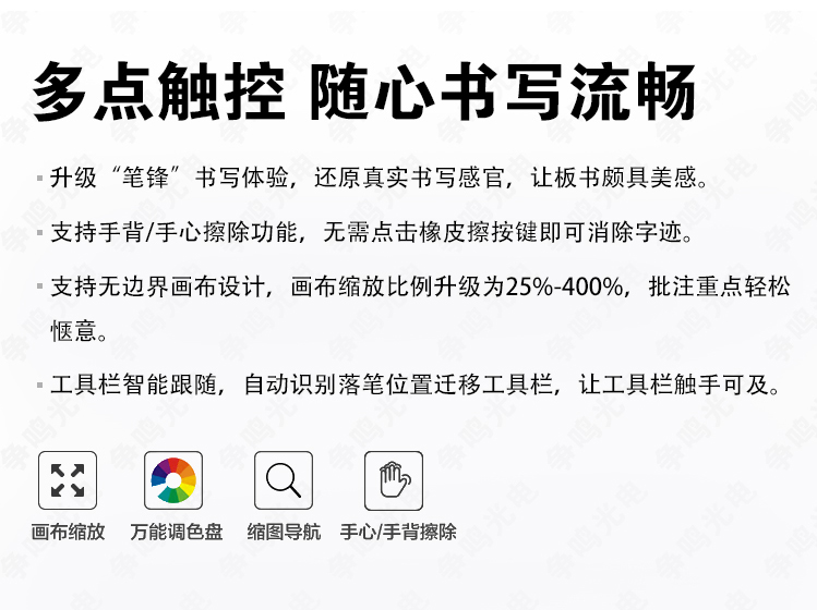 自由批注,书写无边界:任意界面随心批注,百变灵感一键 记录;白板支持20人同时书写,思维交汇绽放无限精彩;